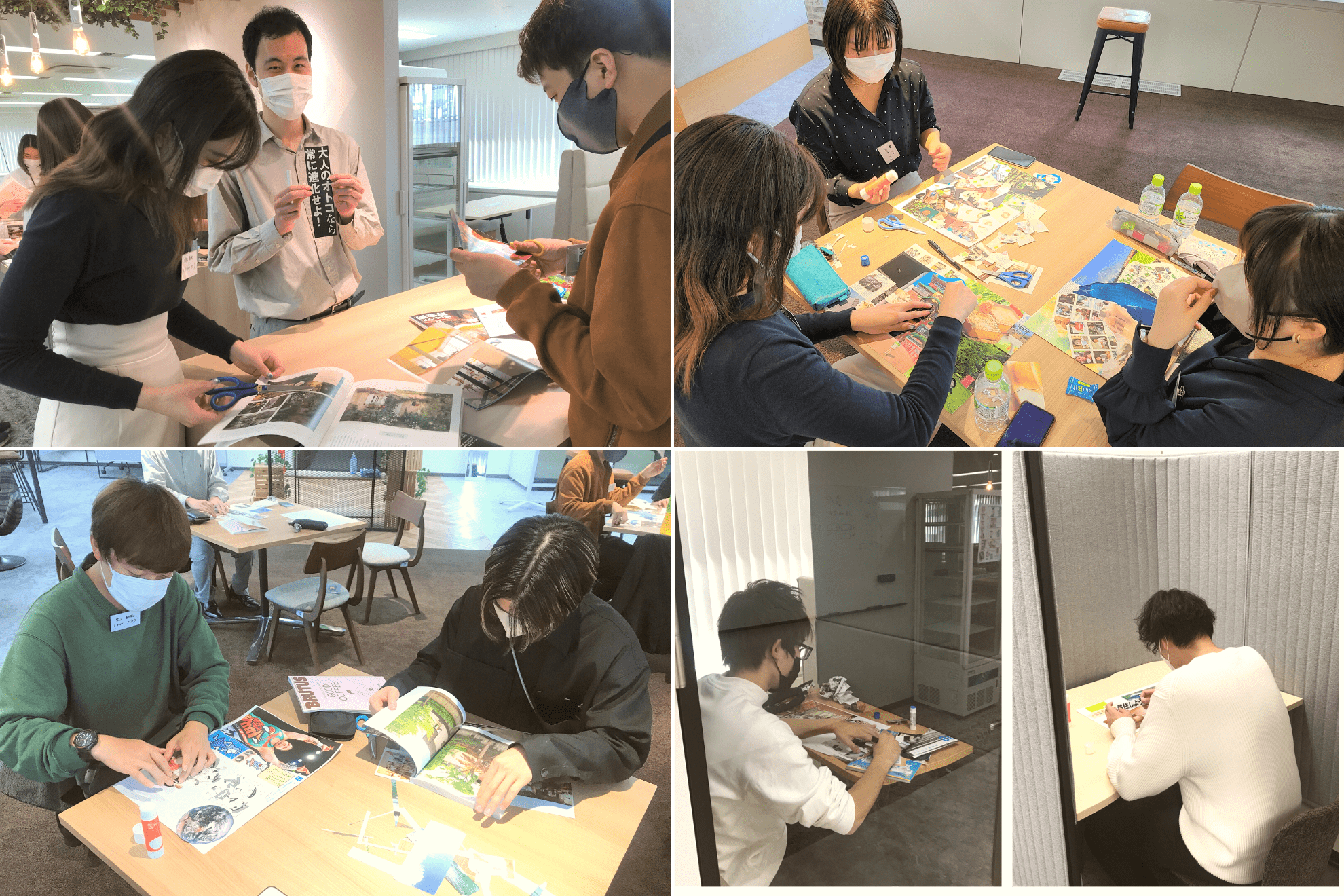 自分の将来像について、雑誌の切り抜きや画像を使ってA3用紙1枚に表現します。
