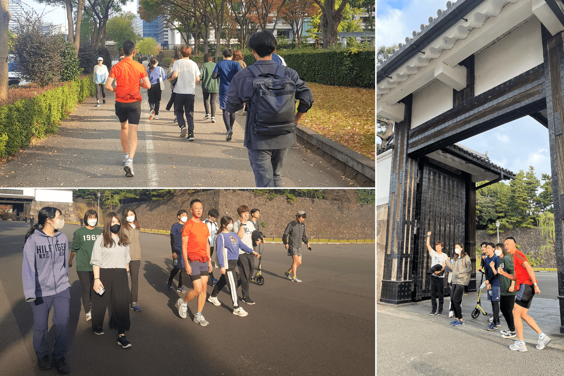 先輩社員も数名駆けつけてくれて、走ったり歩いたりしながら、採用担当以外の社員とつながる時間にもなりました。