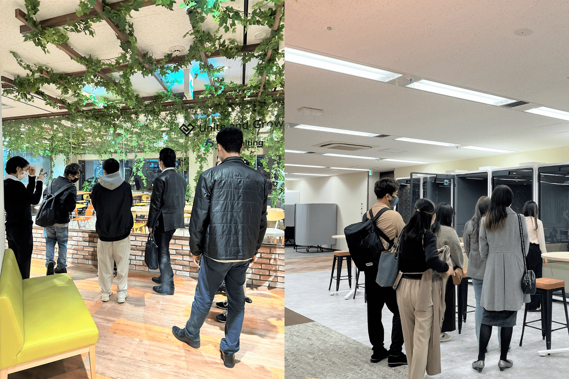 交流会終了後は、本社まで散歩してオフィスツアーをおこないました。採用面談をすべてオンラインで実施したメンバーもいたので、初めてオフィスに来られたことがうれしかったと感想で伝えてくれたメンバーもいました。